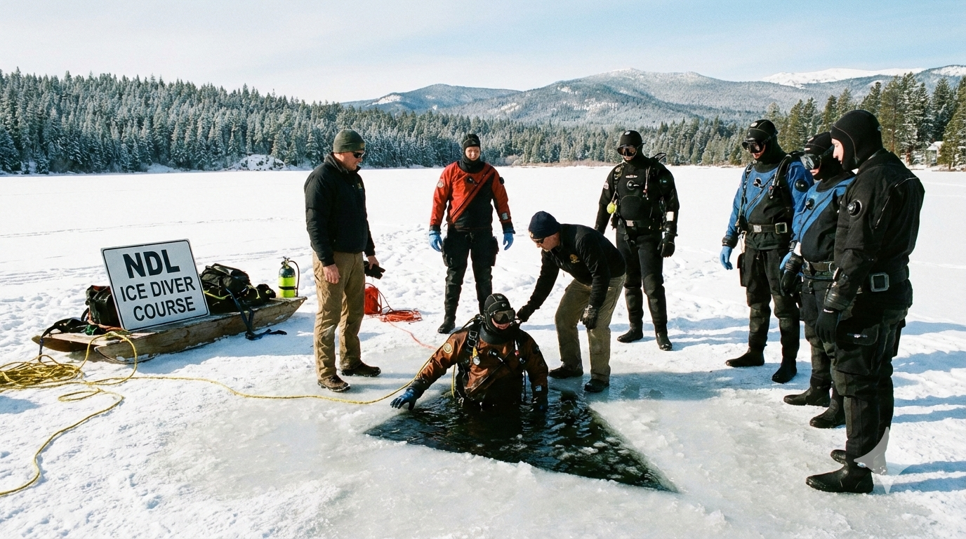 Во время практической же части вы обучитесь целому комплексу учебных дисциплин в открытом водном пространстве, которые необходимы для получения навыков подледных погружений.